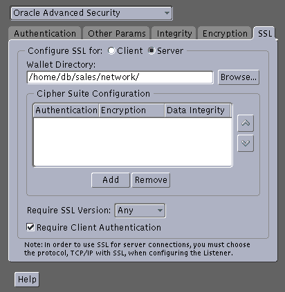 Install Oracle Advanced Security on both the client and server. When you install Oracle Advanced Security, the Oracle Universal Installer installs SSL, Oracle Wallet Manager, and Oracle Enterprise Login Assistant on your system.