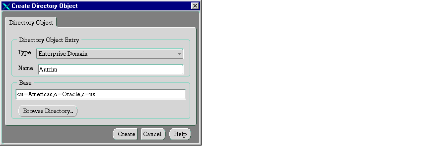 An enterprise domain contains databases and enterprise roles. You create a new enterprise domain by giving a name to the new enterprise domain and defining where the enterprise domain is to be located in the directory.