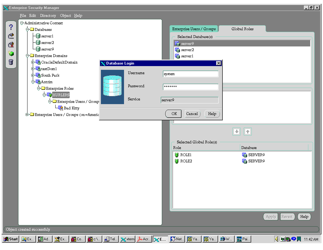 Once you have created an enterprise domain and added a database to it, you can create an enterprise role within the enterprise domain.