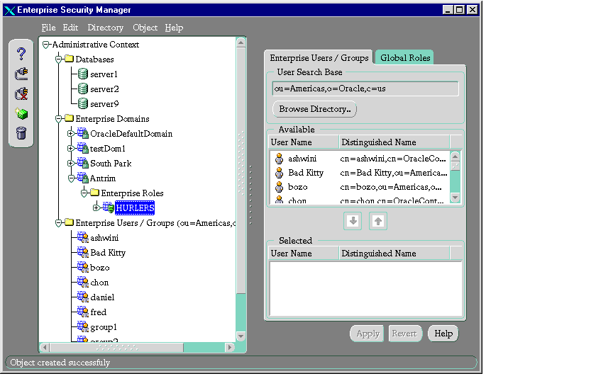 - Click Apply. The enterprise users appear under the Enterprise Role node in the navigator pane.