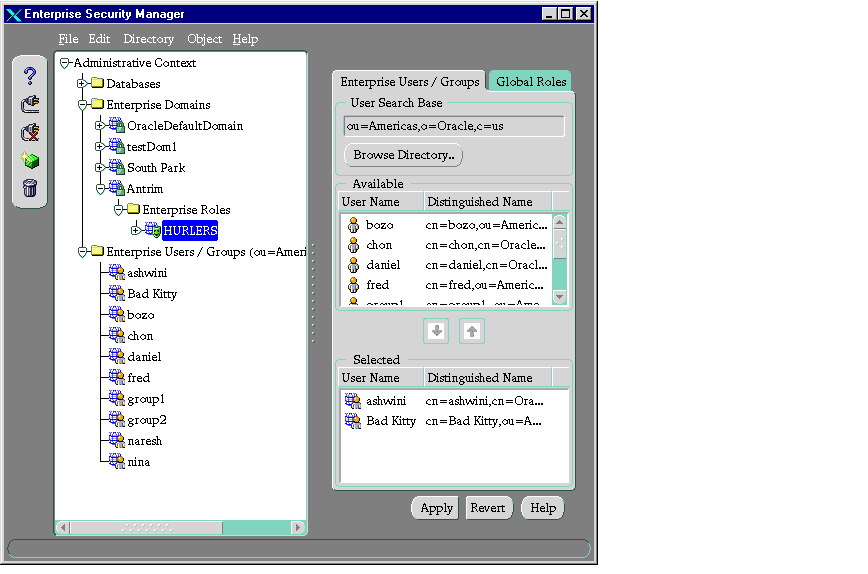 The following instructions assume you are running Oracle Enterprise Manager and have invoked the Oracle Enterprise Security Manager.