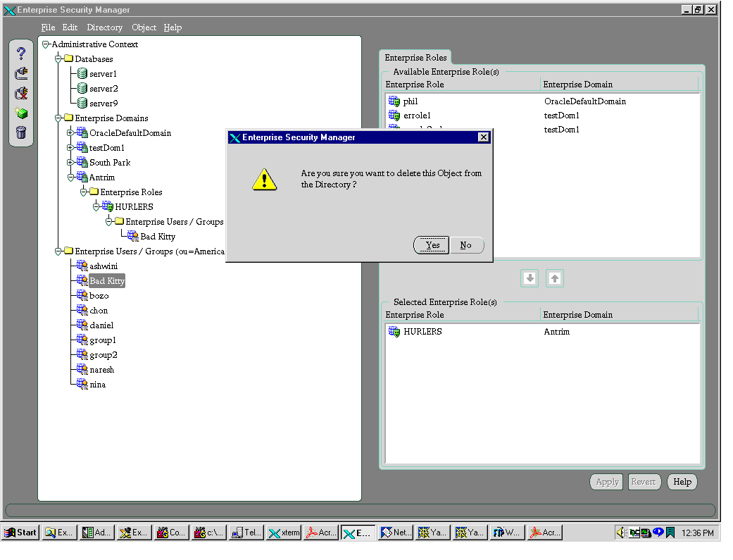 - Click Yes. The enterprise user is deleted from the tree in the navigator pane.