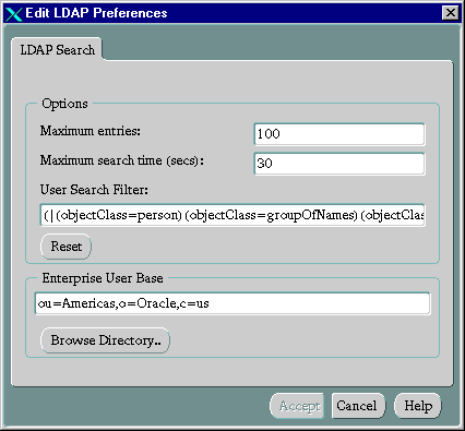 - On the menu bar, click Edit > Preferences. The Edit LDAP Preferences dialog box appears.