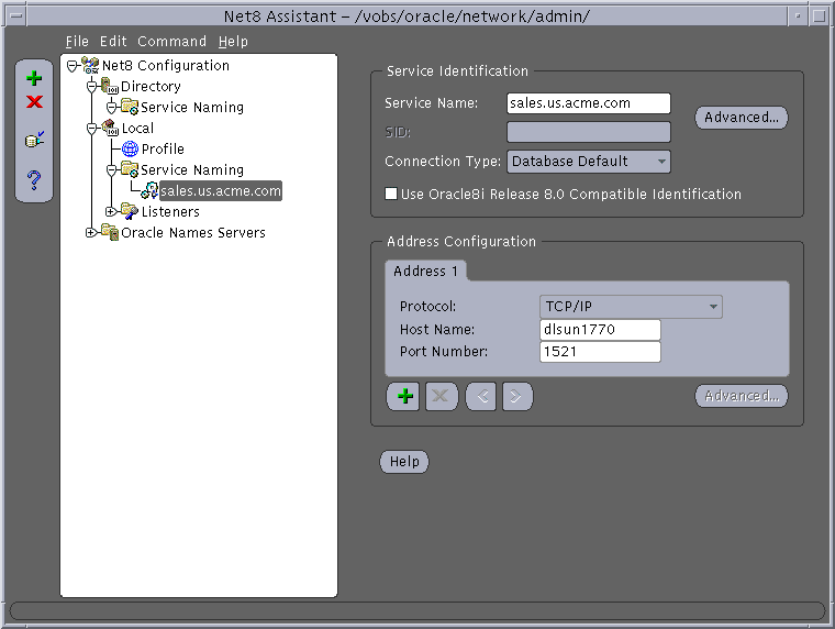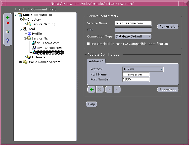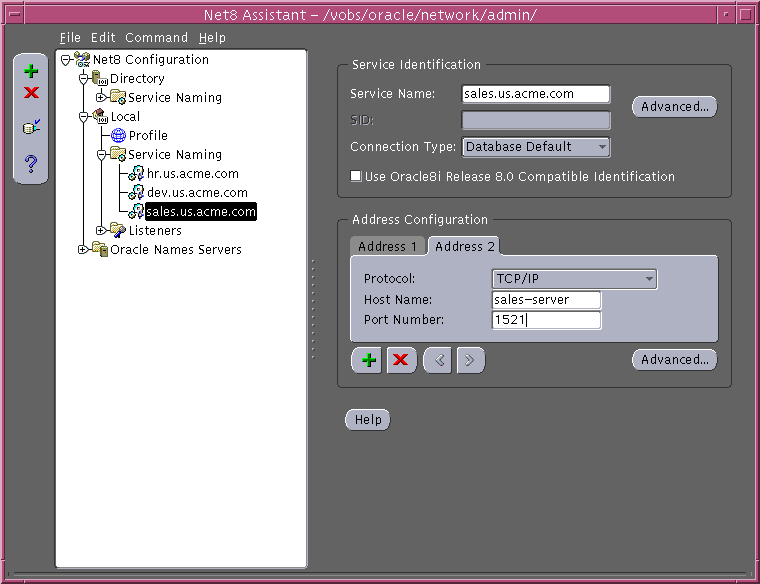 sales.us.acme.com= (description= (address=(protocol=tcp)(host=sales-server)(port=1521)) (connect_data= (service_name=sales.us.acme.com)))