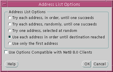 When multiple protocol addresses have been configured for a net service name or database service, the following options may be configured: