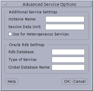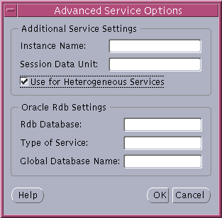 If the destination service is Oracle release 8.1, click (Oracle8i), and enter a service name in the Service Name field. If destination service is Oracle release 8.0 or version 7 database, click (Oracle8 or Previous), and enter an Oracle System Identifier (SID) in the Database SID field.