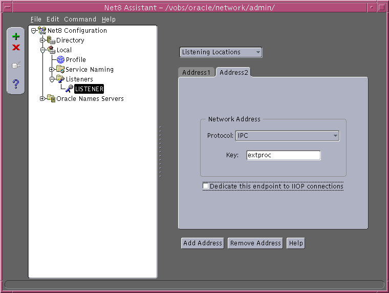 listener= (address= (protocol=ipc) (key=extproc)) sid_list_listener (sid_list= (sid_desc= (sid_name=plsextproc) (oracle_home=/u1/app/oracle/8.1.6) (program=extproc)))