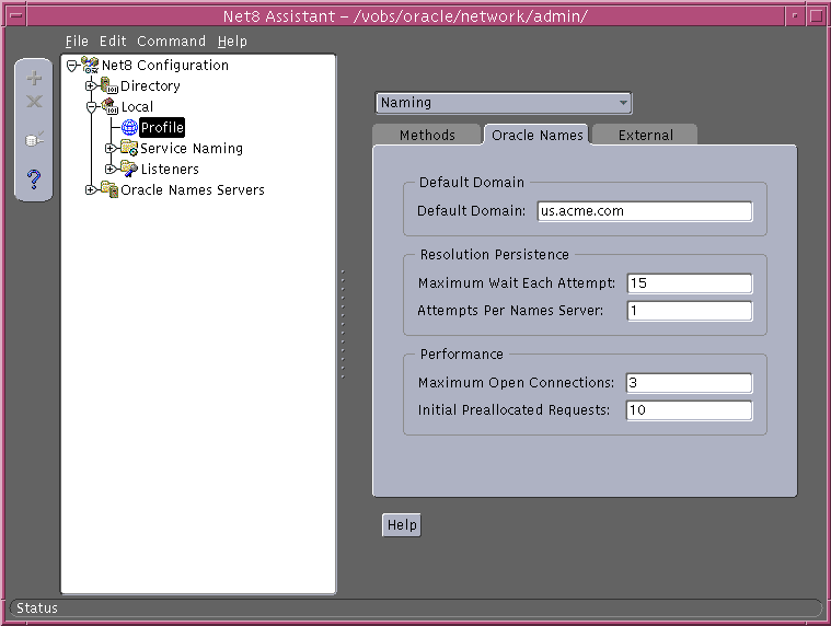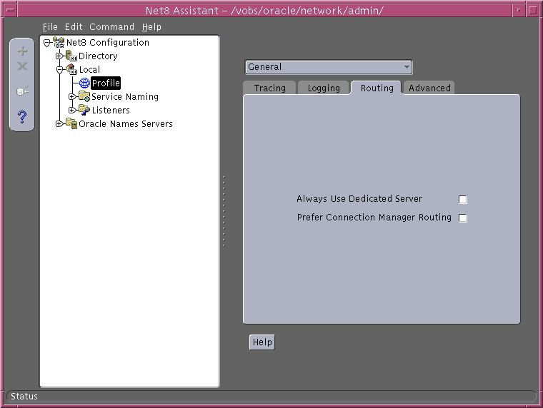 Net service names and database services stored in a directory may be configured with advanced connect data information using Net8 Assistant. See the procedure that follows. |