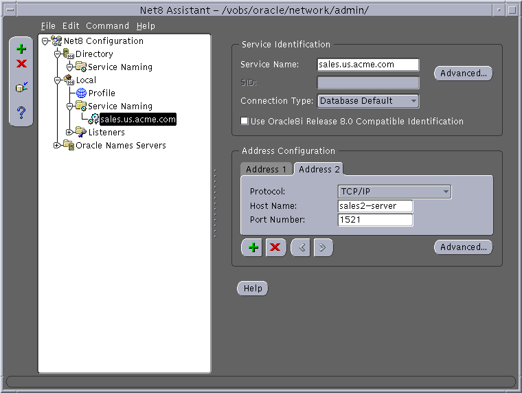 sales.us.acme.com= (description= (address_list= (address=(protocol=tcp)(host=sales1-server)(port=1521)) (address=(protocol=tcp)(host=sales2-server)(port=1521))) (connect_data= (service_name=sales.us.acme.com)))