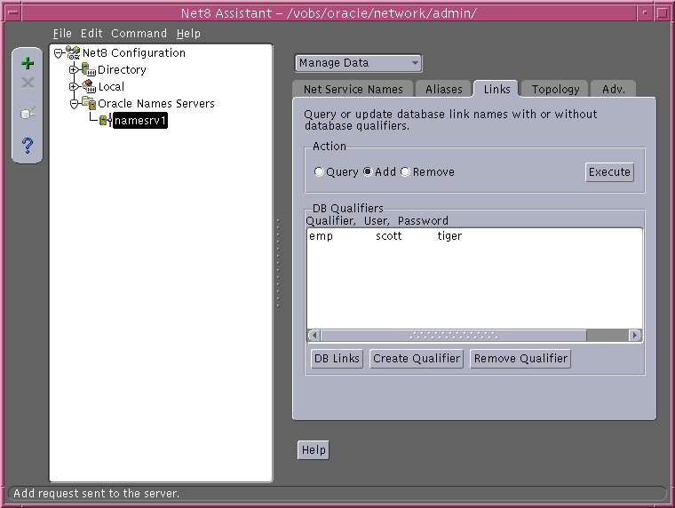 To create a global link qualifier for a global database link, use Net8 Assistant. The NAMESCTL utility does not support creation of link qualifiers.