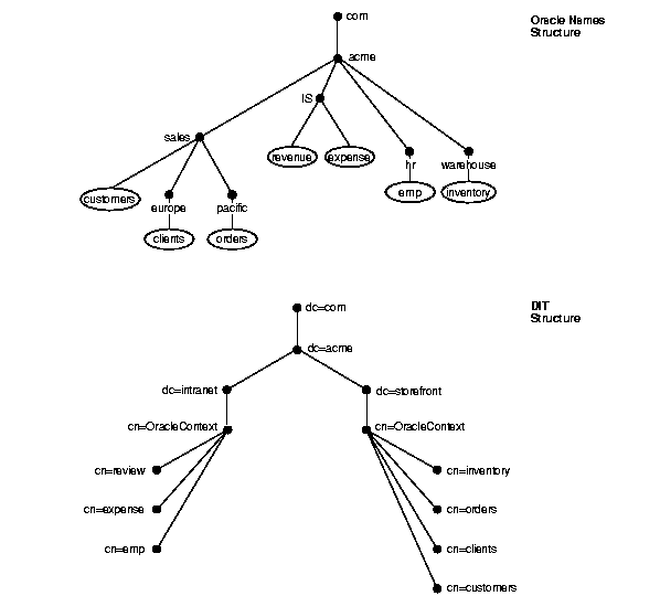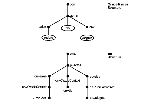 If the naming context is ou=Finance.o=Oracle, then the connect string would have to include a name of cn=Payroll.ou=Finance.o=Oracle. This is an example of a typed name.