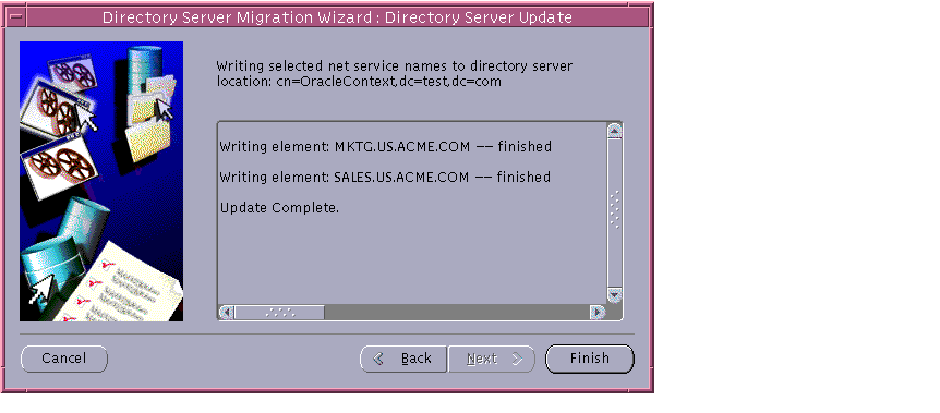 In addition, Net8 Configuration Assistant verifies that the Oracle schema was created. The Oracle schema defines the Oracle entries and their attributes. If the schema does not exist or is an older version, you are prompted to create it.