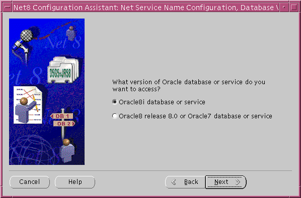 If the destination service is an Oracle8 release 8.1 database, click "Oracle8i database or service". If destination service is an Oracle8 release 8.0 or version 7 database, click "Oracle8 release 8.0 or Oracle7 database or service".