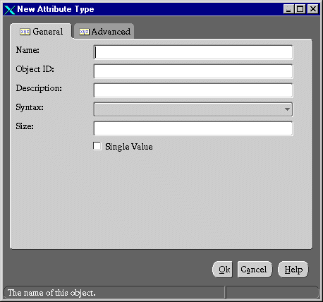 This dialog box contains two tab pages--General and Advanced--with fields in which you enter values either by typing or selecting from menus.