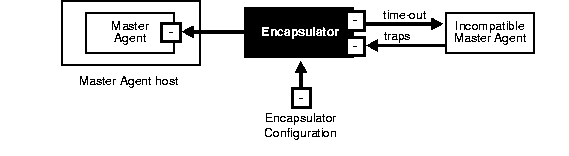 The ENCAPS.CFG configuration file specifies which incompatible agents are to be encapsulated and what to make visible to the Network Management Station (NMS).