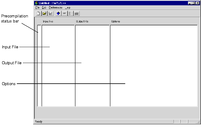 The title bar displays the name of the Pro*C/C++ project. If you have not assigned a name to the current project, the word "Untitled" appears instead.