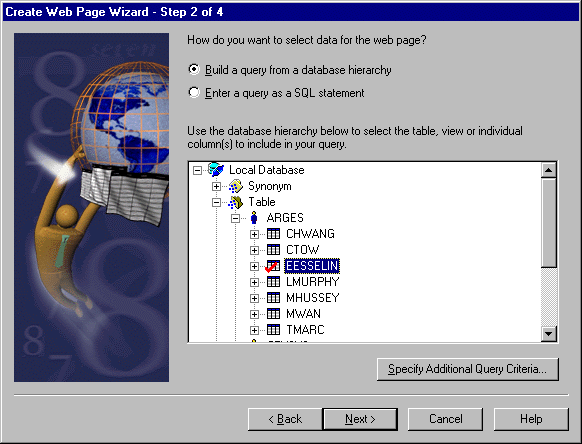 Continue to the next section "Administering Web Page Queries" to learn how to modify and maintain your Web page queries.
