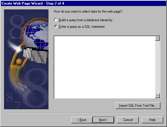The next screen, Create Web Page Wizard (Step 2 of 4) appears.