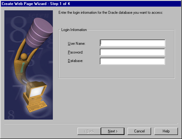 Oracle Web Publishing Assistant merges the results of your database query with an HTML template (use the default template provided with the product or a template that you design). The result is a Web page query.
