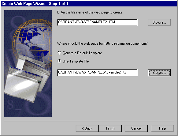 Select Use Template File. Navigate to ORACLE_BASE\ORACLE_HOME\ASSISTANTS\OWAST\SAMPLES\EXAMPLE3.HTX.