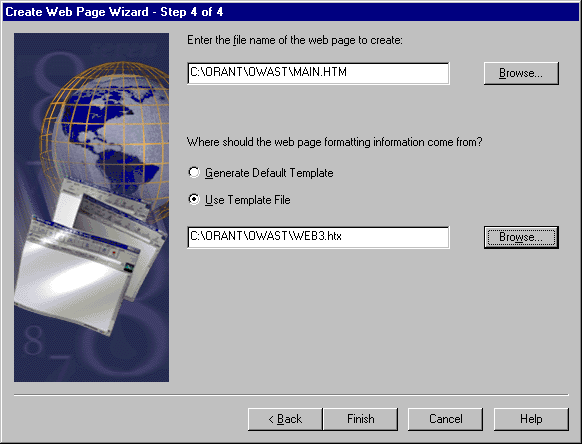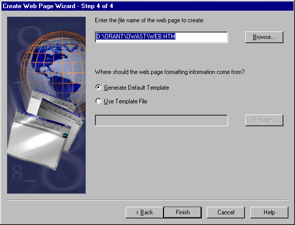 Select Use Template File. Navigate to ORACLE_BASE\ORACLE_HOME\ASSISTANTS\OWAST\SAMPLES\DETAIL.HTX.