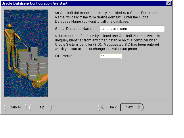 op.us.acme.com, and accept or change the common prefix that is to be used for the Oracle System Identifier (SID) for each instance.
