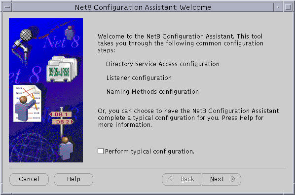 Select "Perform typical configuration" to create the network configuration as a Typical installation. Otherwise, follow the prompts to configure directory service access, listener configuration, and naming method configuration.