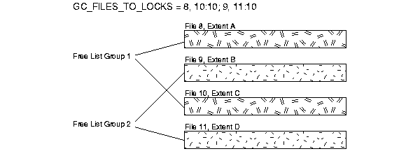 If each extent in a table is in a separate data file, you can use the GC_FILES_TO_LOCKS parameter to allocate specific ranges of PCM locks to each extent, so that each set of PCM locks is associated with only one group of free lists.