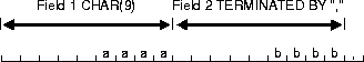 LOAD DATA INFILE 'sample.dat' "str '|'" INTO TABLE person_table FIELDS TERMINATED BY ',' (name CHAR(25), 1 "RESUME" CHAR(507) ENCLOSED BY '<startlob>' AND '<endlob>')