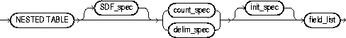 See SQL*Loader's Data Definition Language (DDL) Syntax Diagrams for syntax diagrams of both nested tables and VARRAYs.