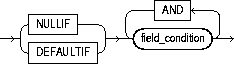 A field condition (field_condition) compares a named field or an area of the record to a specified value. When the condition evaluates to true, the specified function is performed. For example, a true condition might cause the NULLIF function to insert a NULL data value, or cause DEFAULTIF to insert a default value. The syntax for field_condition is: