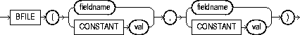 A control file field corresponding to a BFILE column consists of column name followed by the BFILE clause. The BFILE clause takes as arguments a DIRECTORY OBJECT name followed by a BFILE name, both of which can be provided as string constants, or they can be dynamically loaded through some other field. See the Oracle8i SQL Reference for more information.