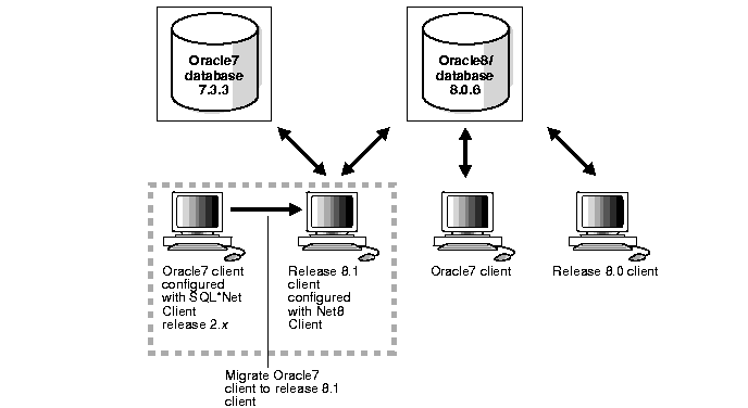 You can migrate some or all of your version 7 clients to release 8.1. You can also migrate your version 7 database to a release 8.1 database or upgrade your release 8.0 database to the current release 8.1 database at a later date.