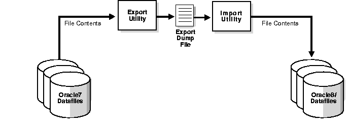 The Export/Import method also can be used to upgrade or downgrade a database. For example, the transformation of an Oracle8i database back into an Oracle7 database can be accomplished using Export/Import.