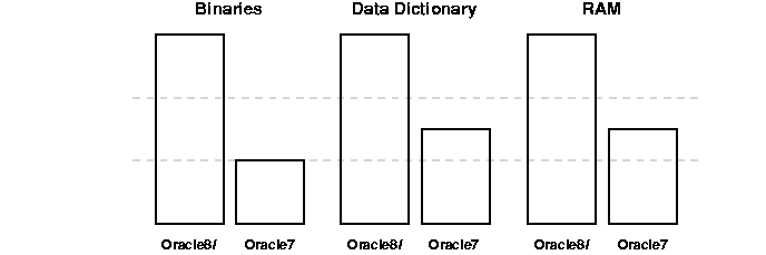 Figure 3-5 illustrates the differences in system requirements between Oracle7 and Oracle8i.