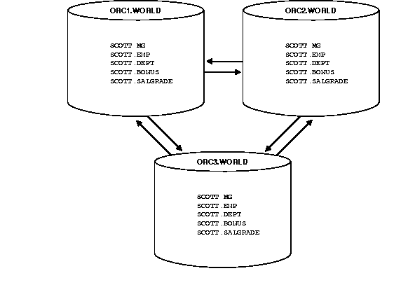 In order for the script in this chapter to work as designed, it is assumed that the schema SCOTT exists at ORC1.WORLD (and optionally ORC2.WORLD and ORC3.WORLD) and contains the following objects: