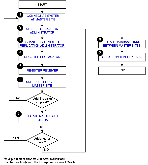 Follow the procedures identified in Figure 2-2 when you build a new master site or in Figure 2-3 when you build a new snapshot site.