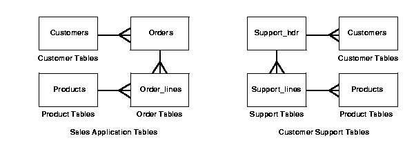 Another design consideration you should take into account is the usage of parameters. If many of the tables above use the Customer ID field, you could define the same parameter in each of the template objects. By using the same parameter, you would only need to define the default parameter value once, and it would be used for all objects during the instantiation process.