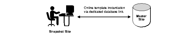 One of the benefits of online instantiation is that the data subset is current as of the instantiation process. This data currency, however, comes at a cost. Online instantiation requires a "live" connection between the snapshot and master sites, which, depending on the size of the snapshot environment created, may increase network traffic.