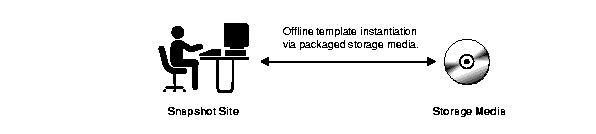 The script or binary file can be copied to a CD-ROM, floppy disk, or other storage media or can be posted on a Web or FTP site to be downloaded to the remote snapshot site. The flexibility in delivery mechanisms allows you and your users to choose the most effective method for instantiating a deployment template.