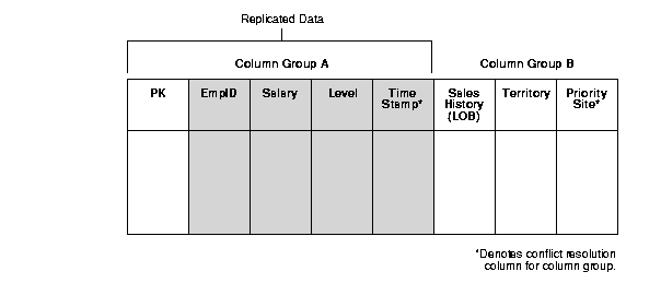 If you are adding a snapshot object that replicates columns PK, EmpID, Salary, and Level (illustrated in Figure 4-6), you also need to include the Time Stamp column because it is used for conflict resolution for columns contained in Column Group A.