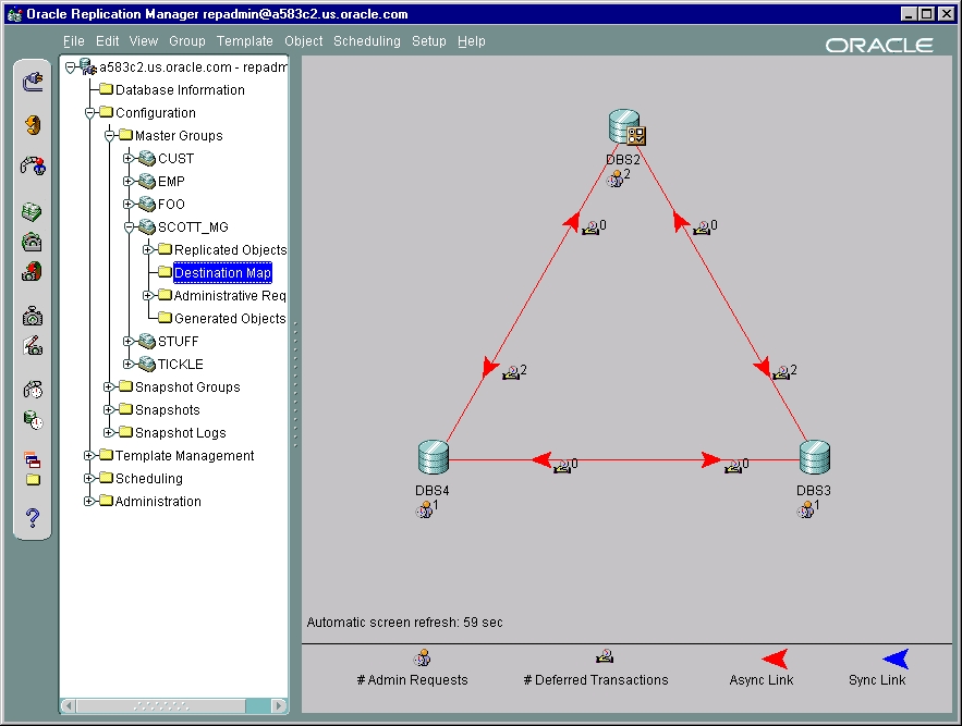 Several tools are available for administering and monitoring your replication environment. Oracle's Replication Manager provides a powerful GUI interface to help you manage your environment, while the replication management API provides you with the familiar application programming interface (API) to build customized scripts for replication administration. Additionally, the replication catalog keeps you informed about your replicated environment.
