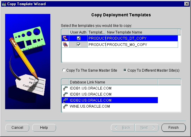 The Copy Template Wizard guides you through copying a deployment template. You may need to copy them to multiple master sites for various reasons. For example, you may want to: