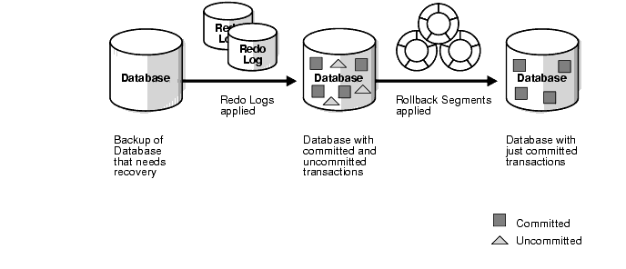 Among other things, the information in a rollback segment is used during database recovery to undo any uncommitted changes applied from the redo log to the datafiles. Therefore, if database recovery is necessary, then the data is in a consistent state after the rollback segments are used to remove all uncommitted data from the datafiles.