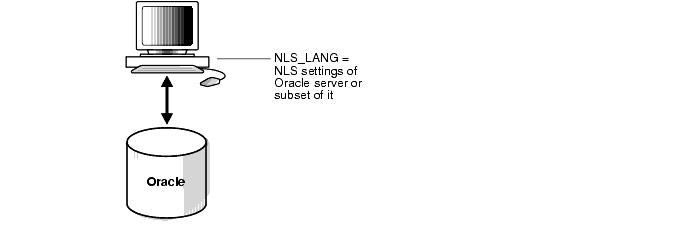 In a client-server environment, set the client character set to be the same as or a subset of the Oracle server character set, as illustrated in Figure 30-6: