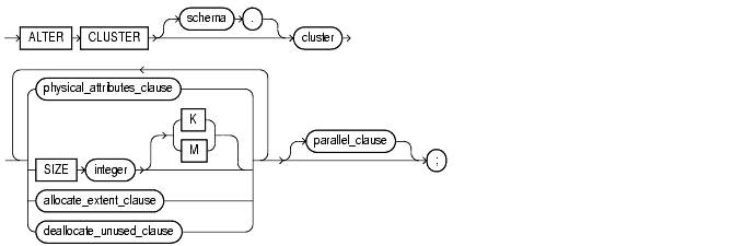 ALTER CLUSTER scott.customer SIZE 512 STORAGE (MAXEXTENTS 25);
