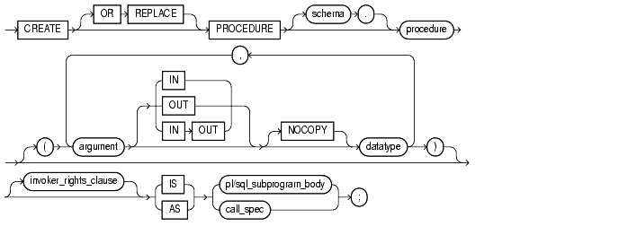 is the schema to contain the procedure. If you omit schema, Oracle creates the procedure in your current schema. |