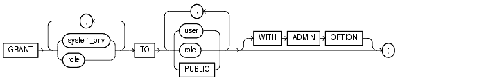 If you grant a system privilege or role to a user without specifying To revoke the admin option on a system privilege or role from a user, you must revoke the privilege or role from the user altogether and then grant the privilege or role to the user without the admin option. |