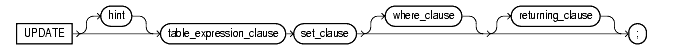 restricts the rows updated to those for which the specified condition is The where_clause determines the rows in which values are updated. If you do not specify the where_clause, all rows are updated. For each row that satisfies the where_clause, the columns to the left of the equals (=) operator in the set_clause are set to the values of the corresponding expressions on the right. The expressions are evaluated as the row is updated. See Also: The syntax description of "Conditions". |