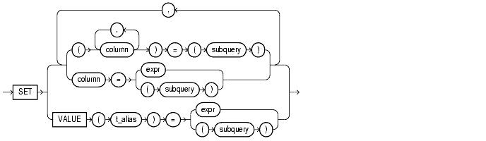 is the new value assigned to the corresponding column. This expression can contain host variables and optional indicator variables. See Also: The syntax description in "Expressions". |